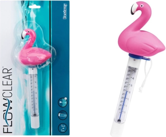 Stijlvolle drijvende zwembadthermometer van Bestway voor snelle en nauwkeurige controle van de watertemperatuur. Toont waarden in °C en °F, gemaakt van duurzaam ABS en blijft dankzij de drijver op het wateroppervlak. Handige koordbevestiging voor eenvoudig vastmaken aan de rand van het zwembad.