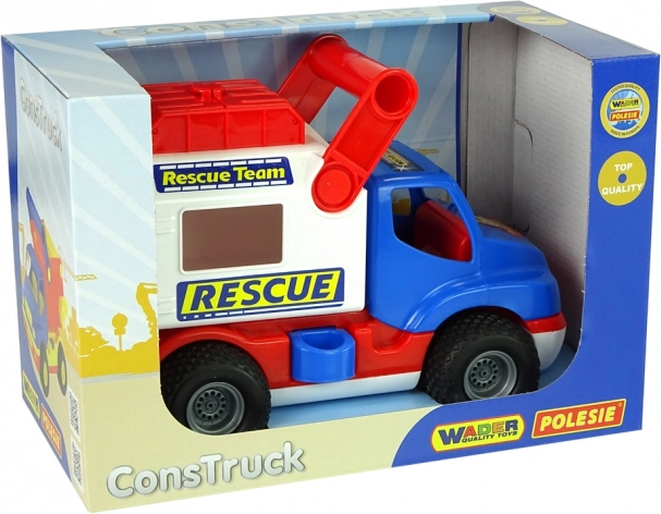 Ontdek de kleurrijke ConTruck-reddingswagen die kinderen meeneemt in de wereld van reddingsmissies. Dankzij de robuuste constructie en veilige materialen is hij ideaal voor de eerste speelervaringen. Openende onderdelen en opbergruimtes stimuleren de fantasie en leren kinderen orde en netheid.