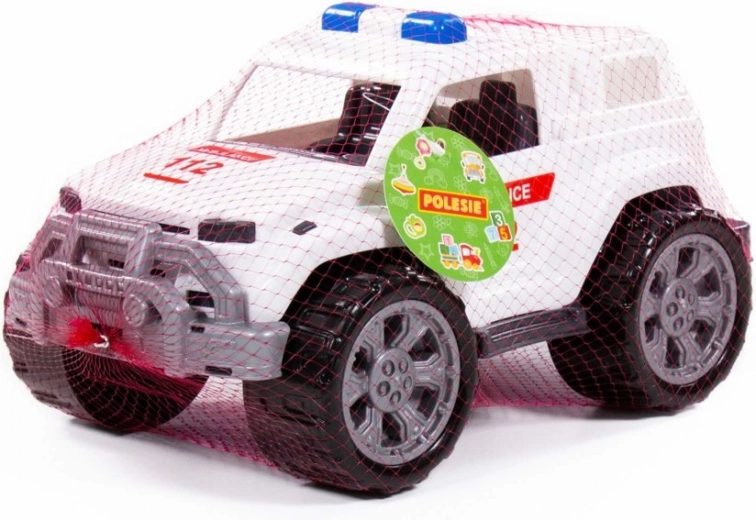 .De terreinwagen is verpakt in een gekleurde kartonnen doos met een open venster. Het speelgoed heeft een CE-certificaat en is gemaakt van gecertificeerde, robuuste materialen die duurzaamheid en gebruiksgemak garanderen. Geschikt voor alle kinderen die de leeftijd van 1 jaar hebben bereikt.