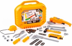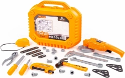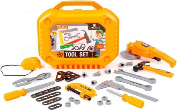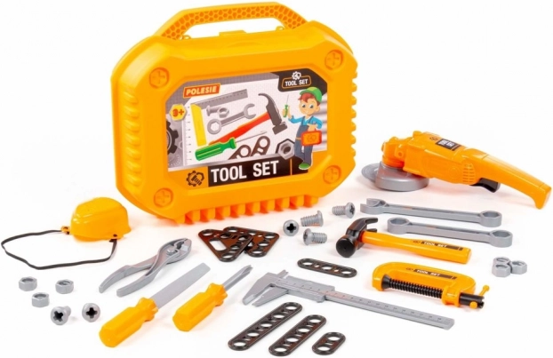 Complete kinder gereedschapskoffer met 30 onderdelen, inclusief een realistische slijper met roterende schijf. Het lichte en veilige kunststof materiaal is ideaal voor kinderen vanaf 3 jaar en stimuleert de fijne motoriek, creativiteit en logisch denken. Dankzij de praktische draagbare koffer hebben kinderen alles overzichtelijk bij elkaar.