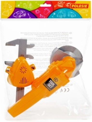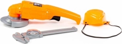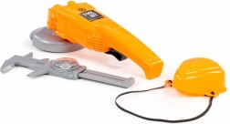 In deze set zit een slijper; door op de knop te drukken begint de schijf te draaien. Om zich te beschermen tegen stof of vuil kan de kleine klusser een masker dragen. De meter stelt je in staat het bewerkte oppervlak precies op te meten. De hele set is oranje van kleur en perfect aangepast aan kleine handjes. De set bezorgt veel kleine helpers volop plezier tijdens het klussen.