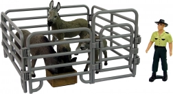 • Complete boerderij: vier ezels, een boer en modulaire omheining voor het bouwen van een weide.