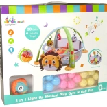 Deze heerlijk zachte mat van prettig materiaal nodigt kinderen uit om kleuren, vormen en texturen te ontdekken. Dankzij de variabele constructie tover je hem eenvoudig om van een open speelvlak naar een speelrand met net aan de zijkanten, die ballen en speeltjes binnen de veilige ruimte houdt. LED-lichtjes en melodieën op de bogen creëren na het indrukken van de knoppen een prikkelende omgeving en motiveren tot bewegen.