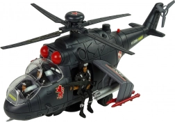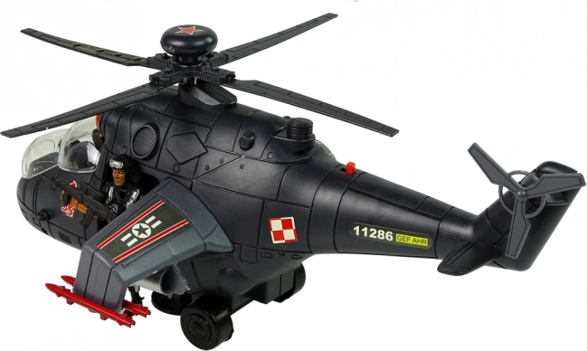 De helikopter is ontworpen in donkere kleuren voor eenvoudige camouflage. Met gedetailleerde elementen biedt het realistisch amusement. Op de romp zijn militaire stickers geplaatst.