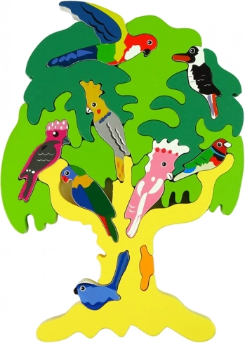 Deze houten puzzel in de vorm van een boom is niet alleen leuk, maar ondersteunt ook de ontwikkeling van uw kind. Kinderen leren nauwkeurigheid, versterken hun verbeeldingskracht en geheugen, en verdiepen zelfs hun kennis over verschillende vogelsoorten, zoals papegaaien. De voltooide boom in groentinten wordt een mooie decoratie in de kinderkamer.