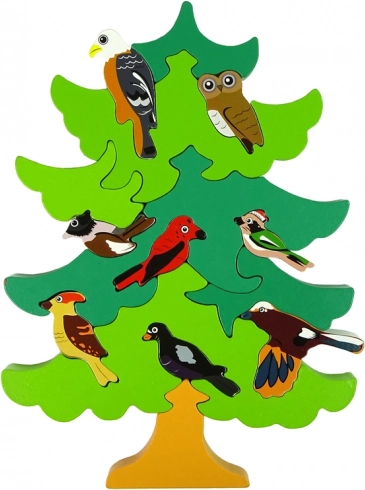 Het leggen van deze houten puzzel biedt kinderen niet alleen plezier, maar draagt ook bij aan de ontwikkeling van concentratie en motorische en cognitieve vaardigheden. Dankzij de verschillende vogelsoorten in de boom leren kinderen de natuur herkennen en doen ze nieuwe kennis op over ecosystemen.
