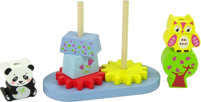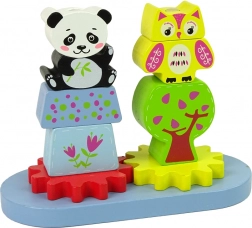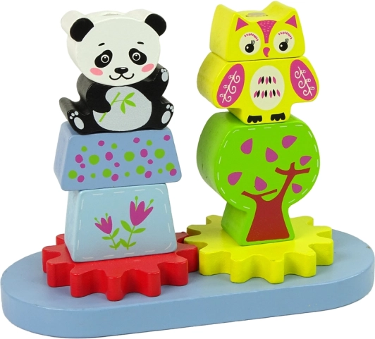 Deze fantastische houten set bestaat uit een basis met blokken in verschillende vormen en maten die dieren voorstellen, zoals een panda en een uil. Hij bevat ook twee tandwielen die beweging aan het spel toevoegen. Deze blokken zijn ideaal voor de ontwikkeling van fijne en manuele vaardigheden bij jonge kinderen wanneer zij ze op de uitstekende pinnen plaatsen.