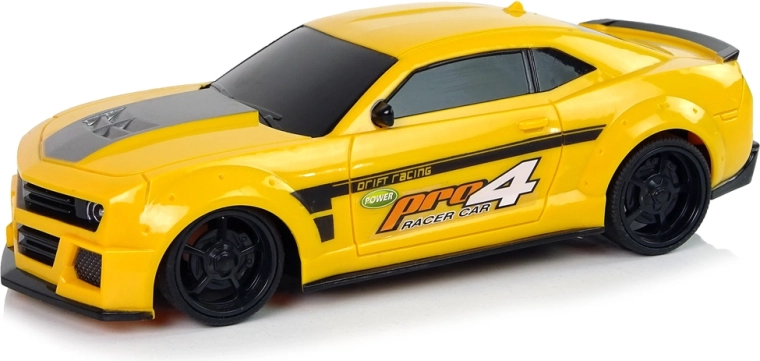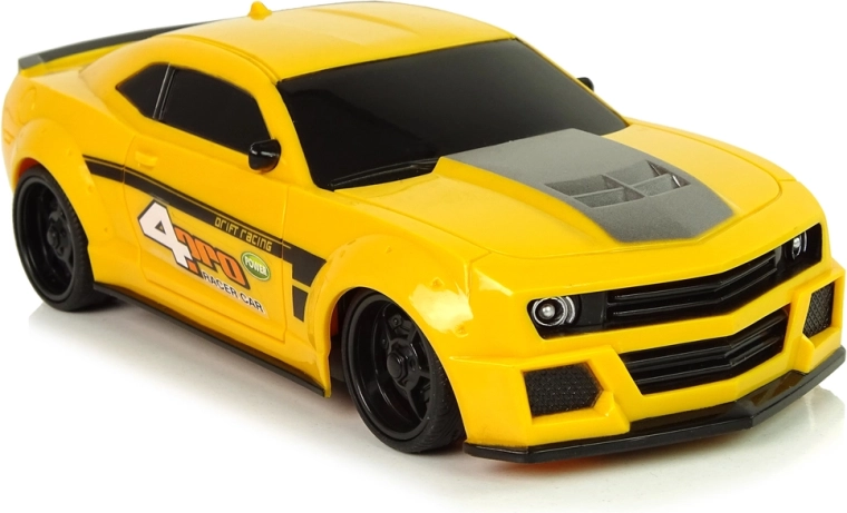 De auto heeft een lichte en stevige constructie, een sportief design en een grijze, brede streep op de motorkap die extra pit geeft. De gele kleur valt op en is niet te missen. Besturen is leuk, vooral voor de kleintjes, daarom maakt de meegeleverde afstandsbediening het mogelijk het kleine model raceauto te bedienen. Hij heeft twee aparte knoppen voor rijden vooruit/achteruit en naar de zijkanten.