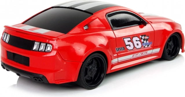 Het autootje heeft een lichte en stevige constructie, een sportief design, twee grijze strepen op de motorkap en sportieve stickers, voeg een vleugje pit toe. De rode kleur valt op en is niet te missen. Besturen is leuk, vooral voor de kleintjes, daarom maakt de meegeleverde afstandsbediening het mogelijk het kleine model van de raceauto te besturen. Het heeft twee aparte knoppen voor rijden vooruit/achteruit en zijwaarts.