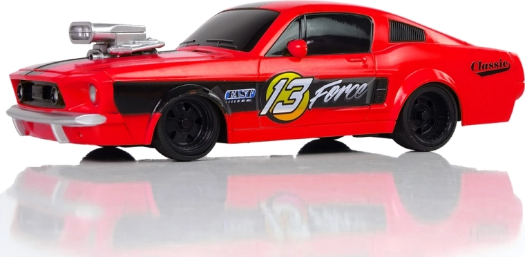 De auto heeft een lichte en stevige constructie, een sportief design met een zilveren streep op het dak die extra karakter geeft. Rubberbanden zorgen voor grip op de weg. Het besturen van het voertuig is geweldig leuk, vooral voor de kleintjes; daarom maakt de afstandsbediening die in de set is inbegrepen het mogelijk om het kleine modelauto te besturen, met twee aparte knoppen voor vooruit/achteruit en naar de zijkanten.