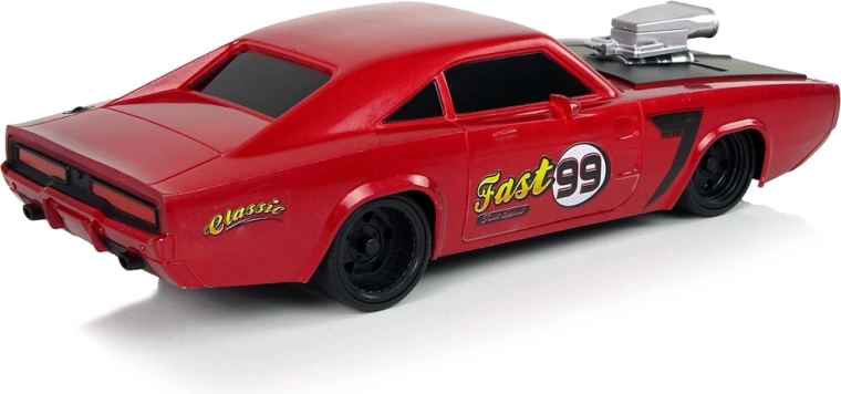 De auto heeft een lichte en robuuste constructie, een sportief design met een zwart element op de motorkap en een zilveren compressor, wat een klauwachtige uitstraling geeft. Rubberen banden zorgen voor grip op de weg. Het voertuig besturen is geweldig leuk, vooral voor de kleintjes, daarom maakt de meegeleverde afstandsbediening het mogelijk om het kleine automodel te besturen met twee afzonderlijke knoppen voor vooruit/achteruit en zijwaarts.