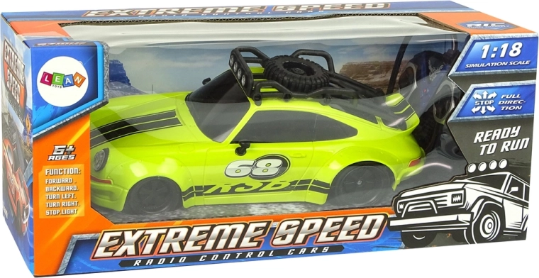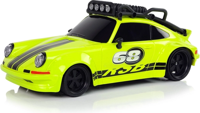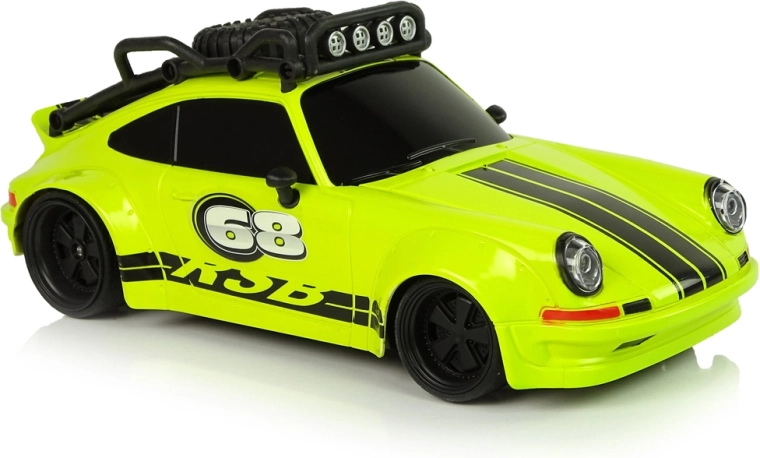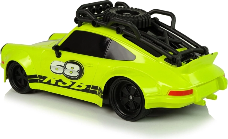 De auto heeft een lichte en stevige constructie, een sportief design met zwarte strepen op het dak en de motorkap. De buitenkant is indrukwekkend. Op het dak bevindt zich een frame met reservewiel en koplampen. Niets zal je verrassen tijdens hoge snelheden. Rubberbanden zorgen voor grip op de weg. Het besturen van het voertuig is een groot plezier, vooral voor de kleintjes. Het modelautootje kan worden bestuurd met de afstandsbediening die bij de set hoort, met twee afzonderlijke knoppen voor vooruit/achteruit en zijwaarts.