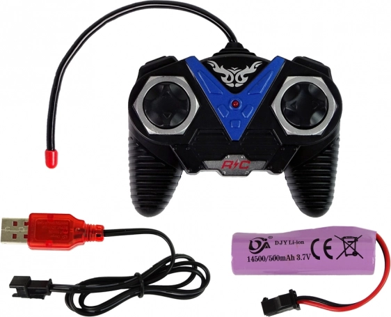 Het speelgoed met afstandsbediening is CE-gecertificeerd, wat vooral getuigt van de hoge productkwaliteit en de veiligheid bij het gebruik ervan. Het voertuigmodel wordt gevoed door een 3,7 V 500 mAh accu en de afstandsbediening (twee stuks) werkt op 1,5 V AA-batterijen, die niet bij de set zijn inbegrepen. Geschikt voor kinderen ouder dan 6 jaar.