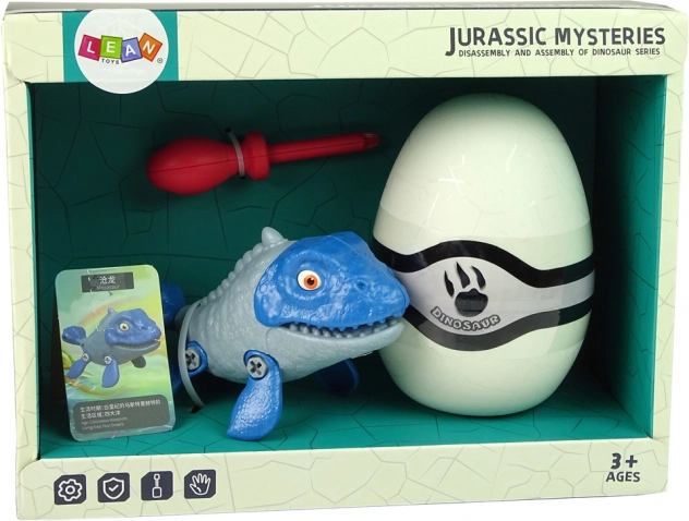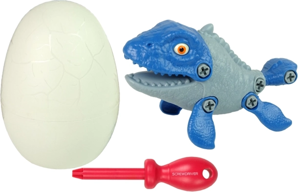 Set dinosaurus mosasaurus met ei DIY met schroevendraaier – blauw