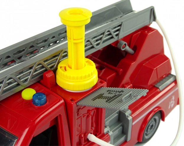 De brandweerauto is uitgerust met een systeem dat het mogelijk maakt om water uit de slang te spuiten, waardoor kinderen een realistische speelervaring krijgen.