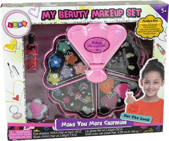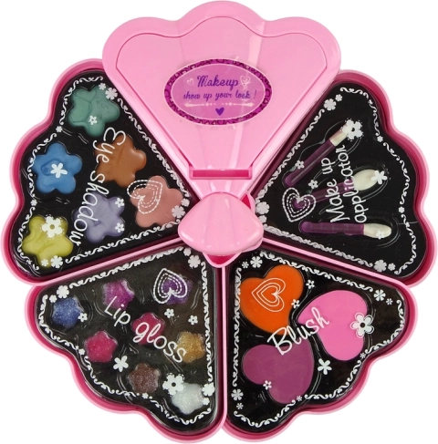 Deze cosmeticaset in de vorm van een schelp is ideaal voor kleine beginnende visagisten. Het bevat zes oogschaduws, drie blushes, acht lipglosses, nagellak en kwastjes voor applicatie. Elke laag verbergt unieke cosmetische mogelijkheden waarmee meisjes hun eigen stijl kunnen creëren. Dankzij het compacte formaat is de set gemakkelijk overal mee naartoe te nemen.