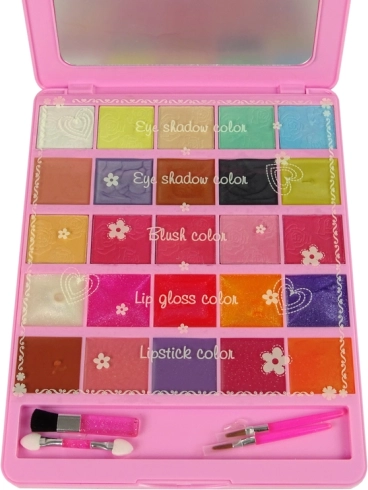 Elke klein meisje droomt ervan om er ooit uit te zien als een prinses. Met de kinder cosmetica palet, die waardevolle make-up producten bevat, komen deze dromen een stap dichterbij. Bij het openen verschijnen oogschaduws, blushes, lipglosses en lipsticks, aangevuld met een praktisch spiegeltje voor nauwkeurige make-up aanbrengen. Deze set is veilig en vrij van parabenen, waardoor het ideaal is voor kinderen en hun delicate huid.
