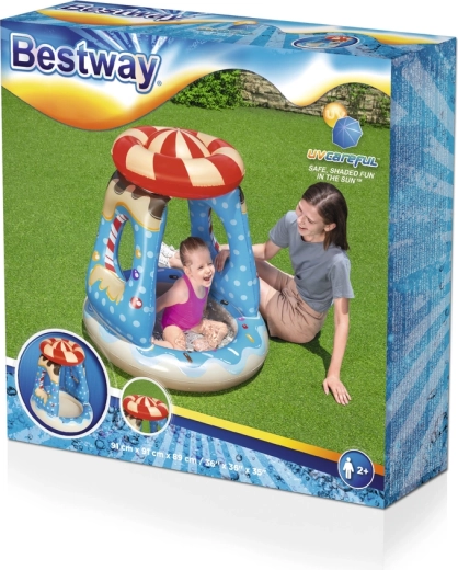 Verras kinderen met een kleurrijk zwembad geïnspireerd op de wereld van zoetigheden. Boven het hoofd is een opblaasbaar dak dat schaduw biedt en beschermt tegen de zon, terwijl de zachte zijwanden zorgen voor comfortabel en veilig waterplezier. Dankzij de compacte afmetingen past het ook in kleinere tuinen of op balkons.