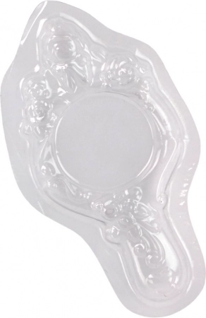 Gebruik de decoratieve witte plastic mal met bloemenmotieven om een stijlvol spiegeltje te maken.