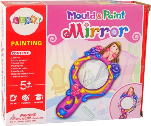 Bevat gipspoeder, een mal voor het spiegeltje, een handvat en zes kleuren voor volledige personalisatie.
