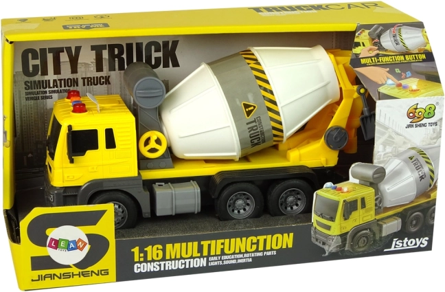 Realistische kindvriendelijke betonmixer op schaal 1:16 voor volop actie. Heeft een draaibare trommel, licht- en geluidseffecten en een praktische uitstortgoot voor makkelijk “betonstorten”. Het gedetailleerde design, veiligheidscertificering CE en EN71 en uitvoering vanaf 3 jaar maken het een geweldige keuze voor kleine bouwers.