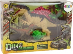 Ontdek de prehistorische wereld met de kinderset DINO PARADISE – realistische figuren van Spinosaurus en Compsognathus, een dinoskelet om te monteren, palmen, struiken en een omheining voor fantasierijk spel. Stimuleert creativiteit, verbeeldingskracht en leren over dinosaurussen. Gemaakt van niet-giftige materialen, veilig voor kinderen.