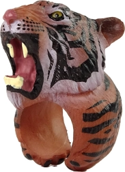 Een leuke en veilige ring met een realistisch hoofd van een Bengaalse tijger stimuleert de verbeelding en leren door spel. Hij is licht, comfortabel en de beschilderde afwerking is niet‑toxisch en veilig voor kinderen. Een geweldige aanvulling op kostuums en educatieve spelletjes over dieren.