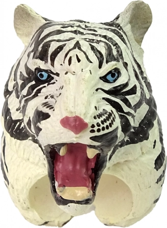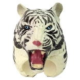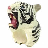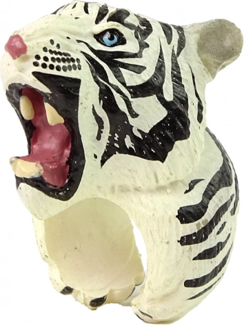 Schattige ring met een witte tijger die kinderen zowel plezier als spelenderwijs leren biedt. De gedetailleerde tijgerkop met blauwe ogen en strepen is beschilderd met niet-giftige verf en dus veilig voor kinderen. Perfect als kostuumaccessoire, rekwisiet voor kleine optredens of als cadeau voor dierenliefhebbers.