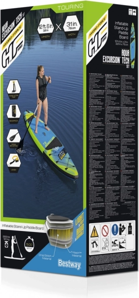 Het opblaasbare SUP‑board HYDRO‑FORCE Aqua Excursion 12.6 is een veelzijdig board voor recreatief peddelen, tochten en conditieritten. Dankzij het robuuste Tritech‑materiaal is het uitzonderlijk stijf en betrouwbaar, terwijl het antislip EVA‑deckpad voor een zekere stand zorgt. De slanke, hydrodynamische vorm verbetert de glide en koersvastheid.