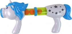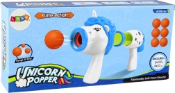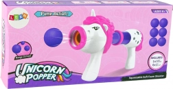 Dit schattige eenhoornpistool zorgt voor veel plezier en veilige actie. Plaats een foam balletje in het transparante magazijn en pomp lucht door een voor- en achterwaartse beweging – het balletje schiet vervolgens uit de bek van de eenhoorn. De zachte foam munitie is mild en geschikt voor kinderspel.
