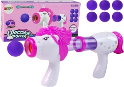 1× pistool in de vorm van een eenhoorn, 6× zacht foam balletje