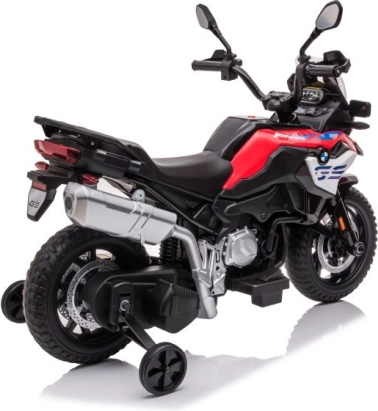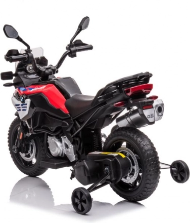Kleine motorliefhebbers zullen het doordachte design, geïnspireerd op het echte model BMW F850, geweldig vinden. De motor biedt een aantrekkelijke combinatie van rood en zwart, realistische details zoals uitlaat, spiegels en een helder windscherm, en tegelijk veilige rijeigenschappen dankzij de hulpwieltjes.