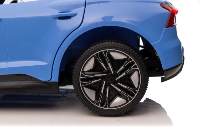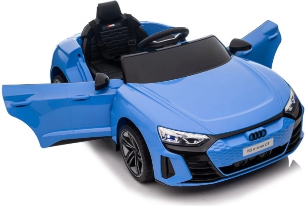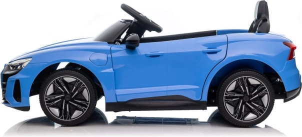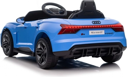 De blauwe elektrische speelgoedauto is tot in detail ontworpen naar het echte model van de Audi RS e-tron GT, inclusief realistische koplampen en spiegels.
