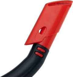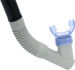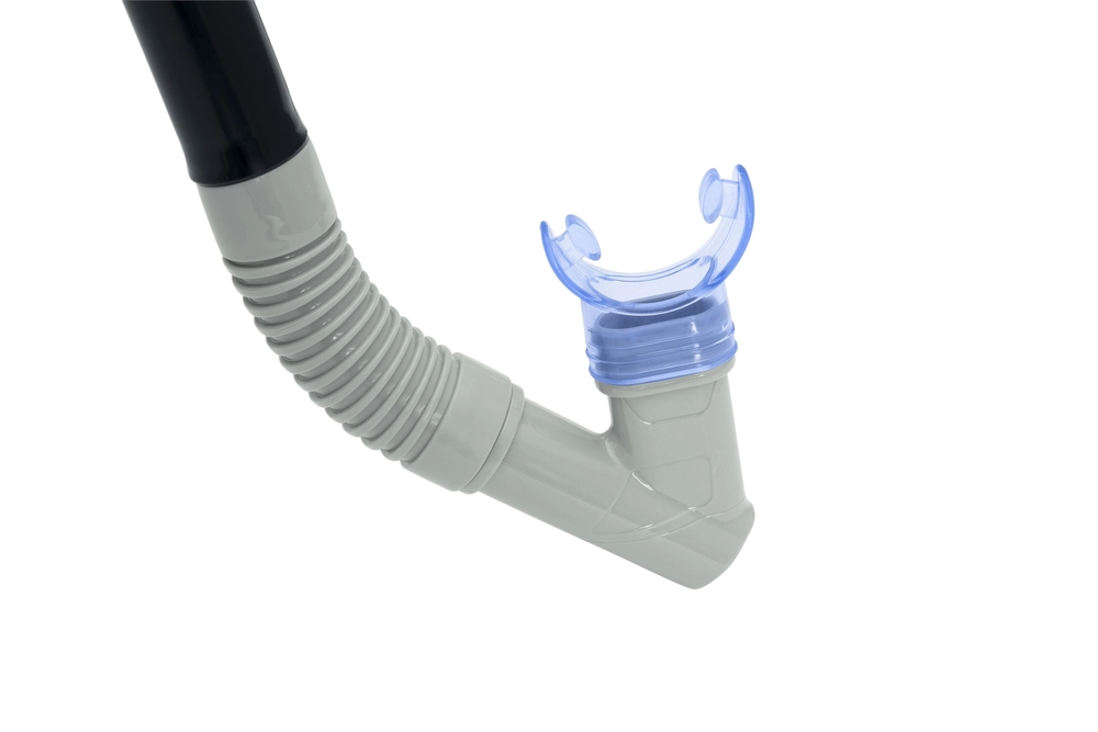 De snorkel heeft een bovenzijde met spatwaterbescherming en een flexibel deel voor een natuurlijke positie en rustige ademhaling.