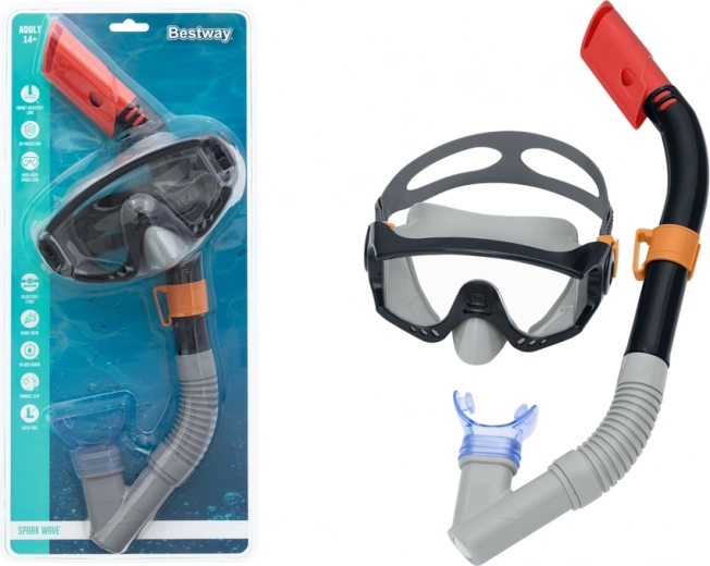 Ontdek de onderwaterwereld met de lichte en duurzame BESTWAY-set. Het masker biedt heldere en robuuste lenzen met UV-bescherming en een zachte skirt voor een uitstekende afdichting zonder lekken. De snorkel heeft bescherming tegen binnendringend water en een flexibel deel voor comfortabel afstellen.