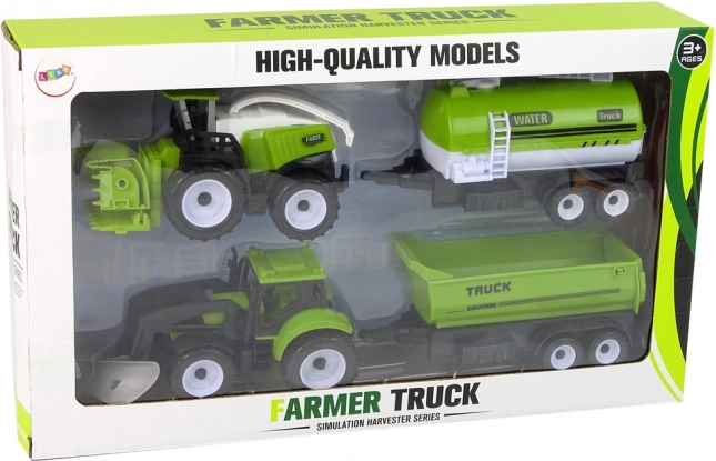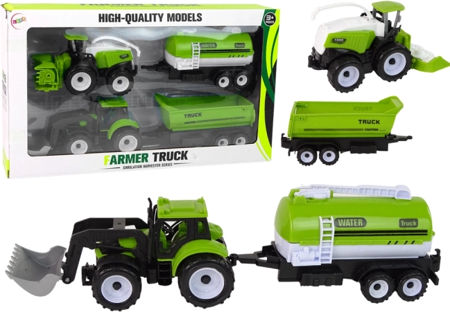 Deze complete set boerderijmachines biedt kinderen een authentieke ervaring van werk op het land. De tractor met voorlader, maaidorser en aanhangers (watertank en laad-/kiepaanhanger) maken het eenvoudig om irrigatie, oogst en materiaaltransport te simuleren. Dankzij de realistische afwerking en het duurzame plastic is de set geschikt voor de kinderkamer, de tuin en de zandbak.