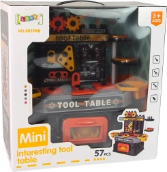 - 57 onderdelen inclusief tafel, gereedschapswand en opbergboxen