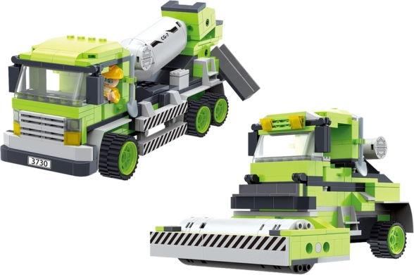 De blokken zijn gemaakt van duurzaam plastic. Ze bieden veel bewegende delen en de mogelijkheid om zelfstandig te creëren. De volgende fase is het spel, waarin je van de voltooide voertuigen eigen bouwplaatsen kunt maken. Een betonmolen met draaiende "trommel", openslaande deuren of een voertuig met draaiende wals zal een kind urenlang boeien!