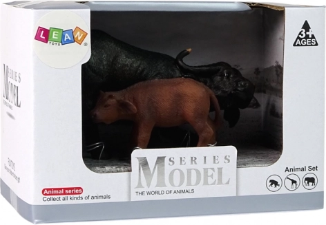 De set bevat een zwarte buffel en een bruin kalf, vervaardigd met aandacht voor details zoals vacht, hoorns en proporties. De figuren zijn perfect voor vrij spel, leren over de natuur en als aanvulling op een kinderboerderij- of dierentuinwereld. Het ideale formaat past in kleine kinderhanden en ondersteunt het oefenen van greep en coördinatie.