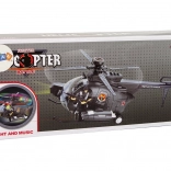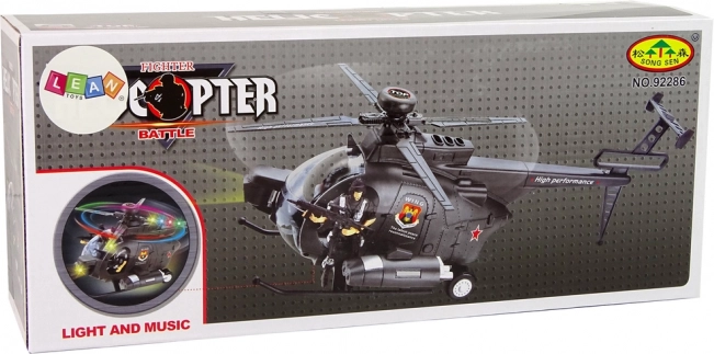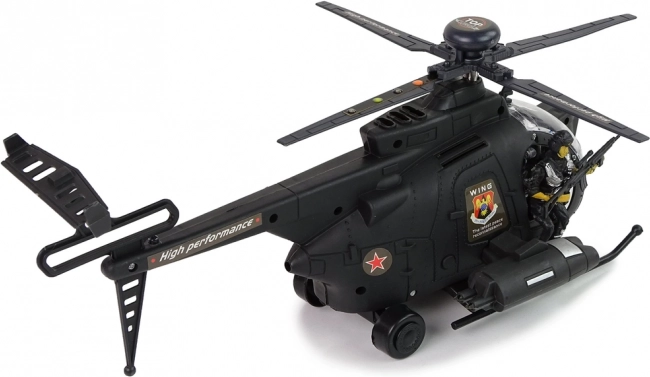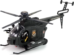 Lichten en geluiden maken het spel realistisch. De helikopter is zwart gekleurd met wijd uitlopende vleugels en een onderstel voor gemakkelijk landen. Twee bemanningsleden maken deel uit van het spel – een die vliegt en de ander klaar voor actie!