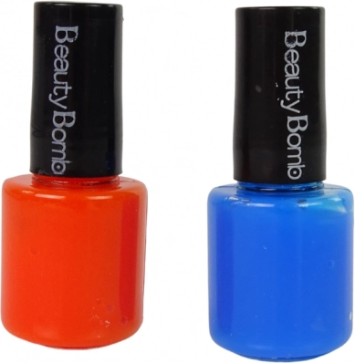 De set bevat twee nagellakken – één in het oranje en één in het blauw, die je nagels een heldere en levendige look geven.