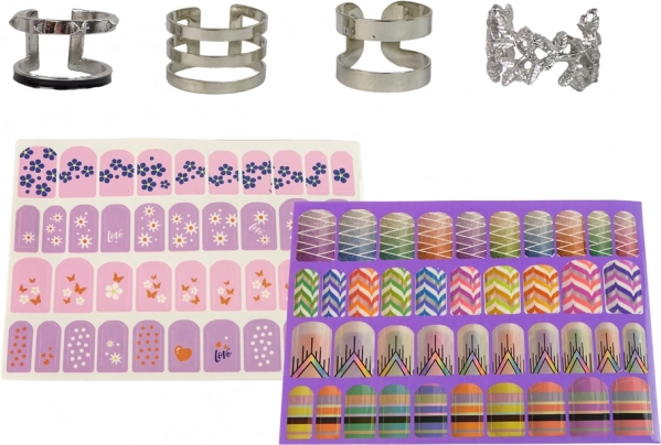 Stickers en ringetjes in verschillende vormen en patronen bieden eindeloze mogelijkheden voor creatieve nageldecoratie.