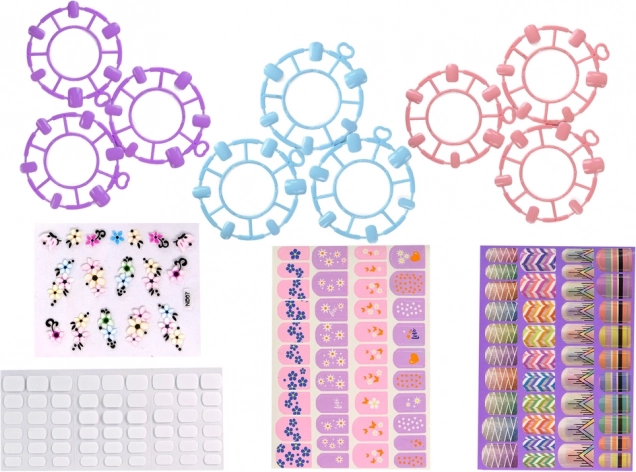 Een multicolorset nagellakken en diverse, kleurrijke stickers. Klassieke stickers met patronen laten je een prachtige manicure creëren die snel en niet-invasief kan worden verwijderd met gewone nagellakremover. Glitters geven je nagels sprankeling en effect. De lamp hardt de lak uit en de frees verzorgt de nagelriemen.