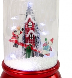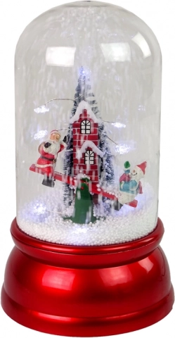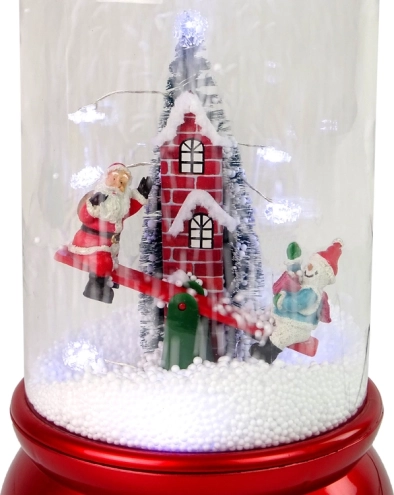 Breng de magie van Kerst in huis met deze elegante sneeuwbol met rode voet en een tafereel met de Kerstman, een sneeuwpop en een winterlandschap. De bol biedt automatisch wervelende sneeuw, LED-verlichting en een muziekstand met kerstliedjes of een stille stand met alleen licht en sneeuw. Een prachtige decoratie die een warme sfeer creëert voor feestelijke avonden.