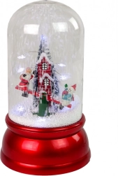 De ingebouwde pomp verspreidt de sneeuw van boven voor het effect van vallende vlokken, terwijl wit LED-licht de magische sfeer van winteravonden benadrukt.