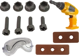 Deze set is uitgerust met een accuboormachine die echt boren simuleert en realistische geluiden maakt. Verder bevat hij sleutels, een schroevendraaier, een hamer en andere tools voor creatief spel. Alle onderdelen worden veilig opgeborgen in de kleurrijke verpakking, die op zichzelf al de indruk wekt van echte tools.