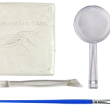De set bevat alle benodigde gereedschappen zodat uw kleine paleontoloog aan de slag kan en zich niet alleen kan bekwamen in archeologische technieken, maar ook in logisch denken tijdens het in elkaar zetten van het skelet.
