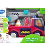 De interactieve brandweerwagen is ideaal voor de ontwikkeling van de fijne motoriek van je kind. Hij bevat beweegbare onderdelen en verschillende functies die de handvaardigheid stimuleren. In de voorcabine zitten twee brandweerfiguurtjes en op de aanhanger staan elementen voor een kleine reddingsactie.