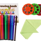 Bevat 3 schijven (24 motieven), 12 kleurstiften, een schriftje en een reinigingssponsje – alles wat een kleine kunstenaar nodig heeft.