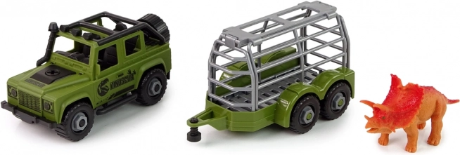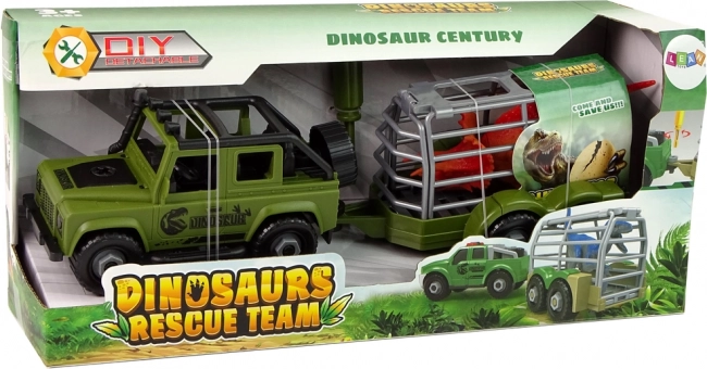 De aanhanger heeft de vorm van een kooi, zodat de kleine ontdekkingsreiziger er zeker van kan zijn dat de dinosaurus niet ontsnapt of gewond raakt. Hij kan op elk moment worden losgekoppeld om alleen met de terreinwagen te spelen.